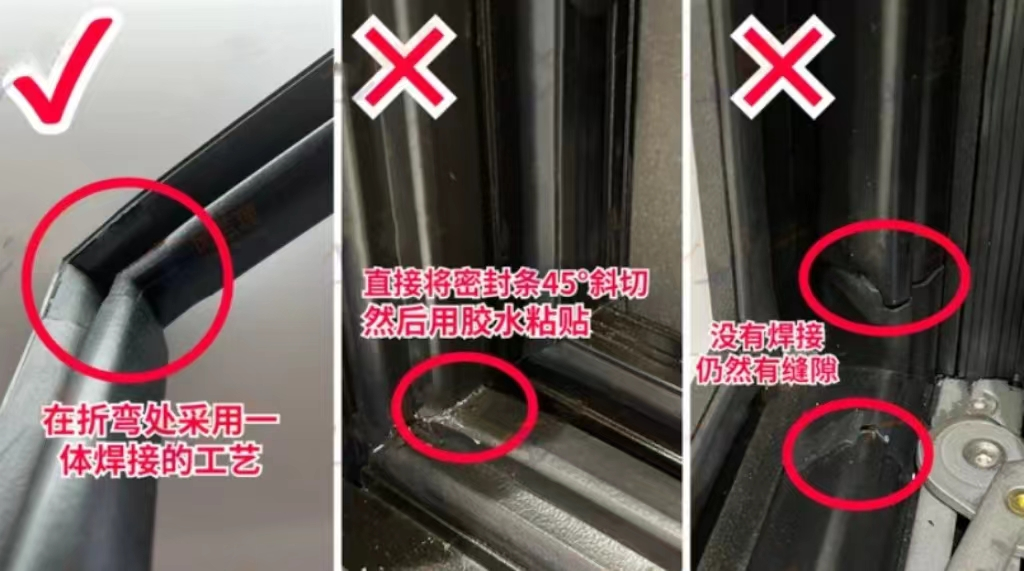 很多商家在密封膠條的轉(zhuǎn)彎處,直接切斷,簡單的用膠水粘合或者不做任何處理,這樣整窗的密封性都會受到很大的影響。
